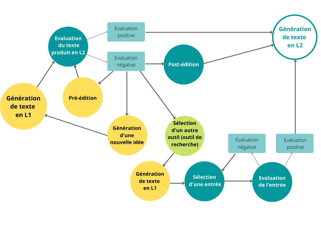 Le processus de consultation du traducteur en ligne est un processus complexe composé d’activités cognitives. Je propose de le modéliser de la façon suivante: